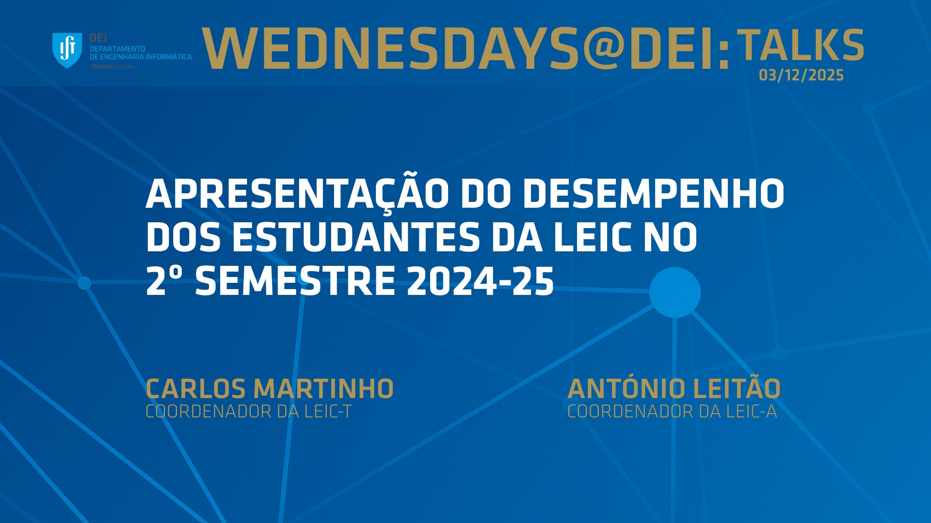 DEI@Wed Wednesdays@DEI: Talks, 03-12-2025 Wednesday, December 3, 2025 1:30 PM Instituto Superior Técnico, Pavilhão de Informática II