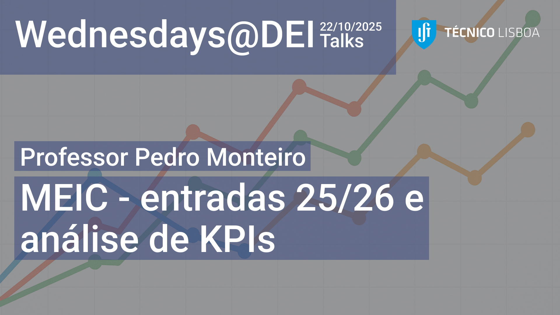 DEI às Quartas Wednesdays@DEI: Talks, 15-10-2025 Quarta-feira, 15 de outubro de 2025 13:30 Instituto Superior Técnico, Pavilhão de Informática II