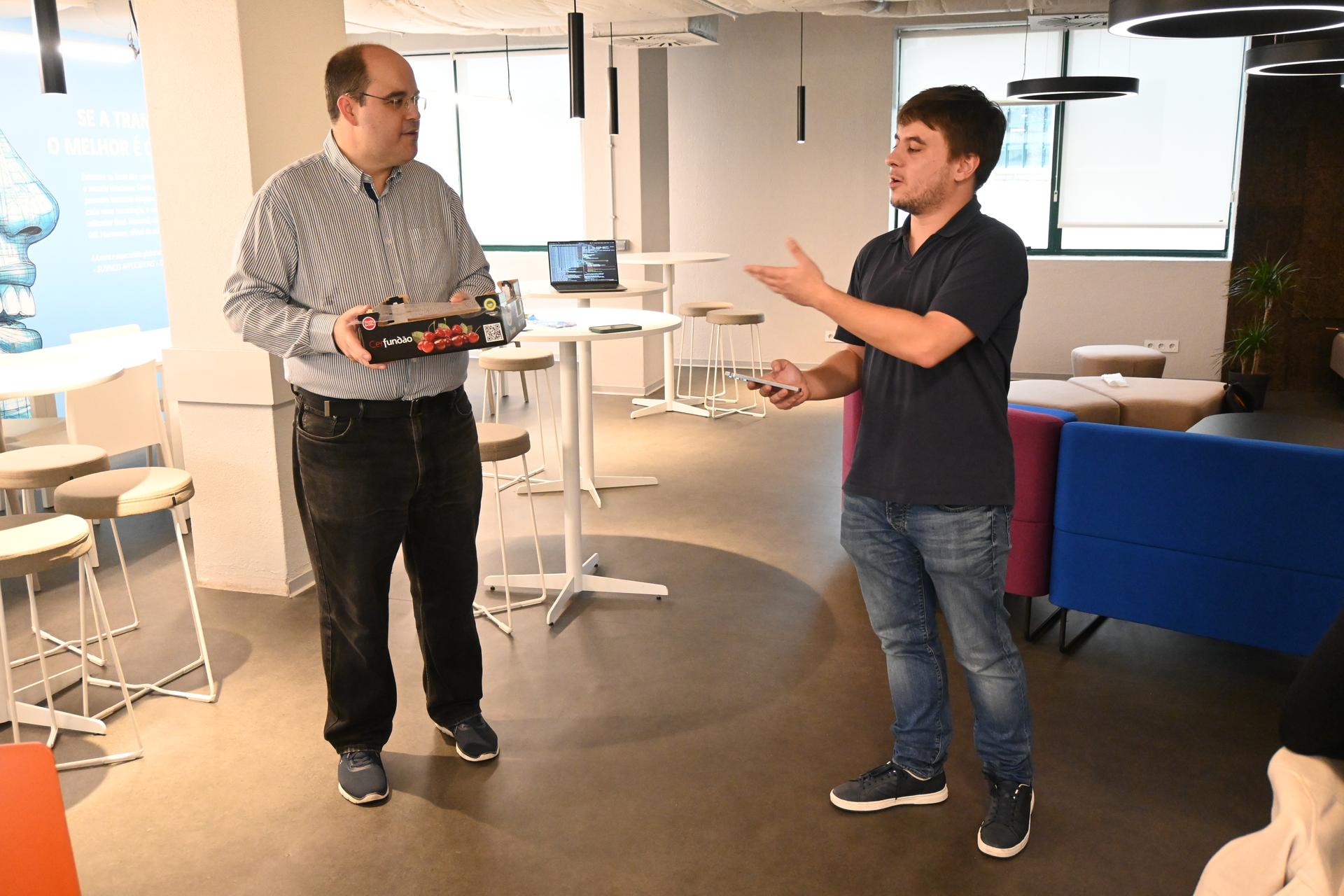 Os visitantes foram acolhidos no novo Software Engineering Lab, onde puderam conhecer de perto tecnologia desenvolvida no departamento e hoje utilizada no dia a dia. Foi, desta forma, demonstrado, na prática, como é hoje possível assegurar a origem da cereja do Fundão e de frutos secos através da leitura de um código presente nas embalagens, utilizando um comum smartphone.